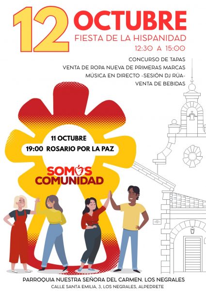 La Parroquia Nuestra Señora del Carmen de Los Negrales ha organizado diferentes actividades para honrar a la virgen del Pilar y festejar la fiesta de la Hispanidad. Así, el próximo sábado, 11 de octubre, a las 19:00 h., se rezará un rosario en la Iglesia. «Nos uniremos al Papa León XIV y a toda la Iglesia para rezar por la paz. En mundo lleno de conflictos, divisiones, guerra y violencia, queremos alzar la voz y el corazón para proclamar que no hay camino para la paz, la paz es el camino», ha señalado el párroco Isaac Estévez.