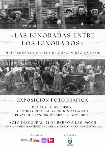 La Casa de Cultura Asunción Balaguer de Alpedrete acoge, entre los días 21 al 31 de enero, la muestra “Las ignoradas entre los ignorados”, una exposición de fotografías, elementos audiovisuales y otros documentos que intenta reflejar el sufrimiento de las mujeres que fueron internadas en los campos de concentración nazis.