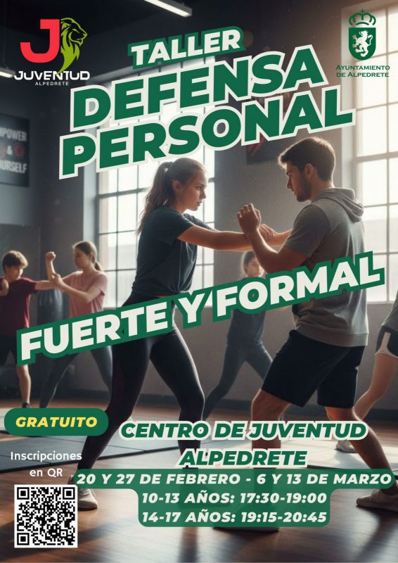El Ayuntamiento de Alpedrete, a través del Centro de Juventud, pone en marcha el taller gratuito de defensa personal “Fuerte y formal”, una propuesta práctica y formativa dirigida a chicos y chicas de 10 a 17 años. El objetivo es dotarles de herramientas básicas de autoprotección y respuesta ante situaciones de riesgo, reforzando la seguridad personal, la confianza, el autocontrol y la toma de decisiones bajo presión.
