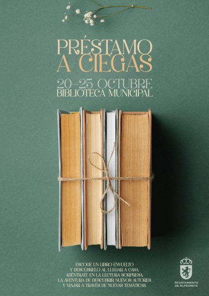 Con el objetivo de conmemorar el Día Internacional de las Bibliotecas que se celebra el 24 de octubre, la biblioteca municipal de Alpedrete ha organizado una actividad de animación a la lectura, dirigida a todos los públicos independientemente de su edad. “Préstamo a ciegas” se desarrollará del 20 al 25 de octubre. Los usuarios de cualquier edad encontrarán en la biblioteca libros envueltos que podrán llevarse en préstamo sin conocer el título ni el autor del ejemplar. De esta manera los lectores podrán descubrir libros seleccionados de una gran diversidad de autores, géneros, temáticas… una sorpresa te espera para celebrar el Día de las Bibliotecas.