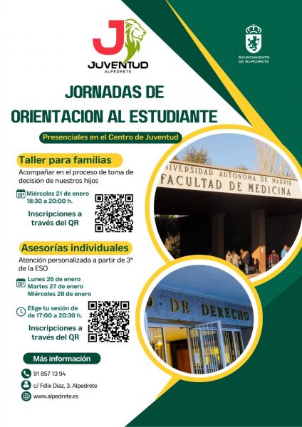 El Centro de Juventud de Alpedrete acoge las Jornadas de Orientación al Estudiante del 21 al 30 de enero