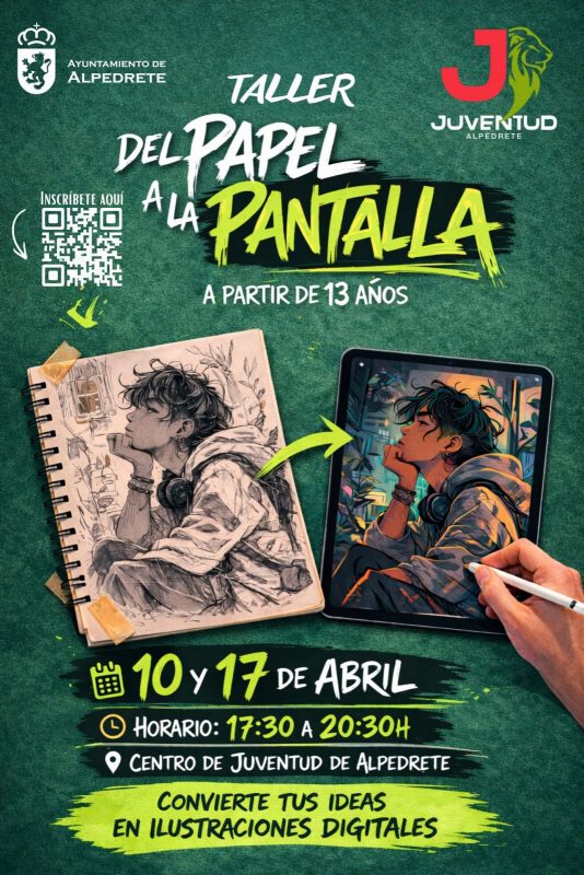 El Ayuntamiento de Alpedrete, a través de la Concejalía de Juventud, lanza una nueva propuesta formativa dirigida a jóvenes interesados en el dibujo y la creatividad: el taller de ilustración digital “Del papel a la pantalla”, una iniciativa que combina técnicas tradicionales con herramientas digitales para dar vida a nuevas formas de expresión artística.
