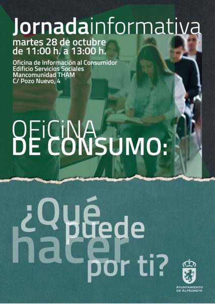 La Oficina de Información al Consumidor de Alpedrete ofrecerá una jornada informativa con el objeto de acercar los servicios y dar a conocer el funcionamiento entre los vecinos. Así, el martes 28 de octubre, de 11:00 a 13:00 h., se atenderán dudas y consultas de los interesados, informando entre otras cuestiones sobre qué es una Oficina de Consumo, qué trámites realiza y en qué casos puede ayudar: información y orientación, presentación de reclamaciones, mediación con empresas y demás gestiones habituales en materia de consumo.
