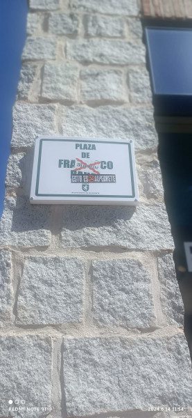 Las placas de la plaza Francisco Rabal de Alpedrete, vandalizadas con pegatinas de simbología nazi