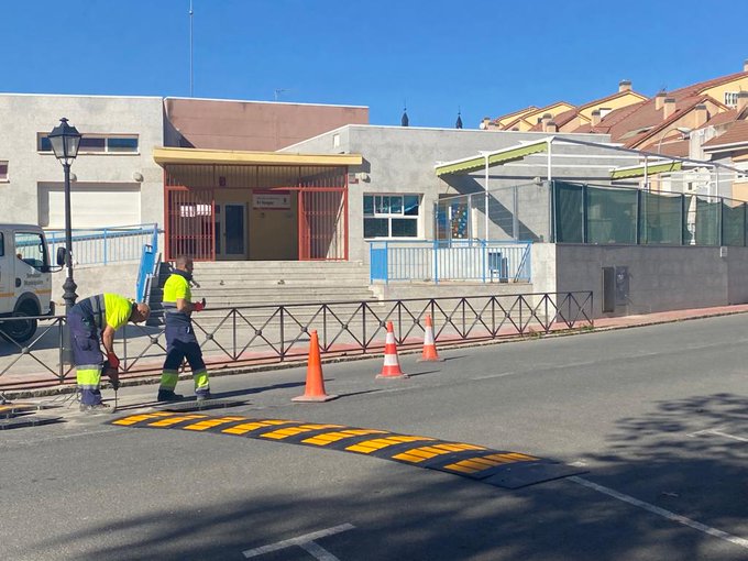 Los servicios municipales del Ayuntamiento de Alpedrete han comenzado a instalar varios reductores de velocidad en la zona de los colegios Santa Quiteria, El Peralejo y el Clara Campoamor, así como el IES, para que los vehículos que transitan por estas vías tengan que aminorar la marcha.