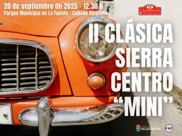 El próximo sábado 20 de septiembre se celebrará en Collado Mediano la segunda edición de la Clásica Sierra Centro “Mini”, una prueba de regularidad para vehículos clásicos organizada por el Club Deportivo Clásicos Sierra Centro, en la que colabora el Ayuntamiento.