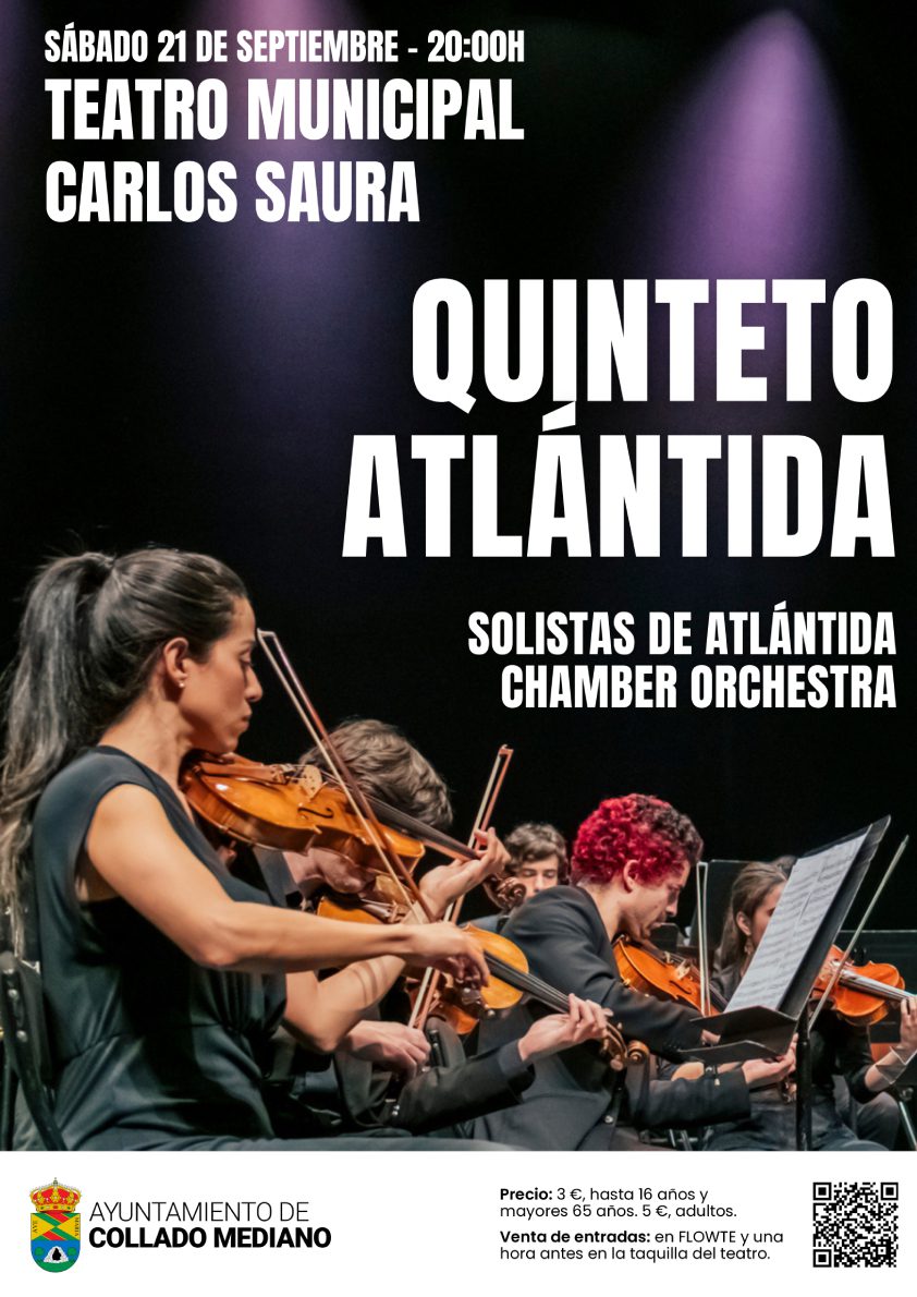 El próximo, sábado 21 de septiembre, a las 20:00 horas, tendrá lugar el concierto del Quinteto Atlántida en el Teatro Municipal Carlos Saura de Collado Mediano. Una propuesta que ofrece dos obras: el Cuarteto de Cuerda nº2 en La menor op. 13 de F. Mendelssohn y el Quinteto con clarinete en La mayor, K. 581 o Quinteto Stadler de W.A. Mozart.