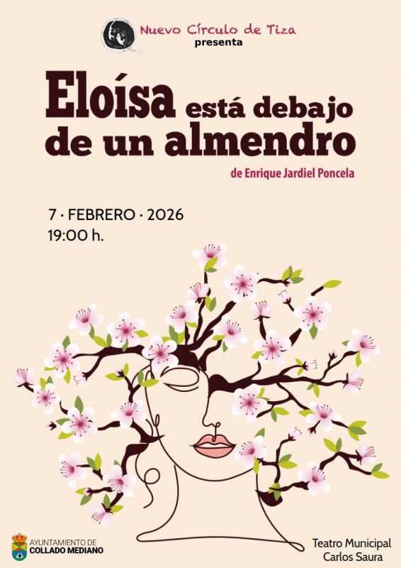 El próximo 7 de febrero de 2026, a las 19:00 h, el Teatro Municipal Carlos Saura de Collado Mediano acogerá la representación de Eloísa está debajo de un almendro, una de las comedias más destacadas de Enrique Jardiel Poncela, a cargo del grupo Nuevo Círculo Tiza.