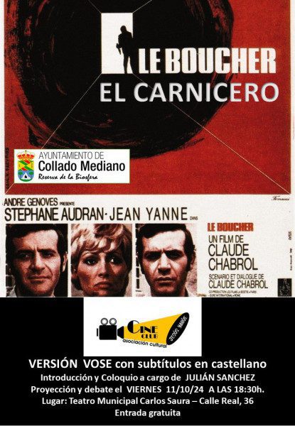 El próximo viernes, 11 de octubre, la Asociación Cultural Cine club Jesús Yagüe celebrará la tercera sesión de la temporada 24-25, con la proyección de la película El Carnicero de Claude Chabrol protagonizada por Stéphane Audran y Jean Yanne. Esta cita tendrá lugar en el Teatro Municipal Carlos Saura , calle Real, 36 de Collado Mediano, y comenzará a las 18,30 horas. La entrada es libre hasta completar aforo.