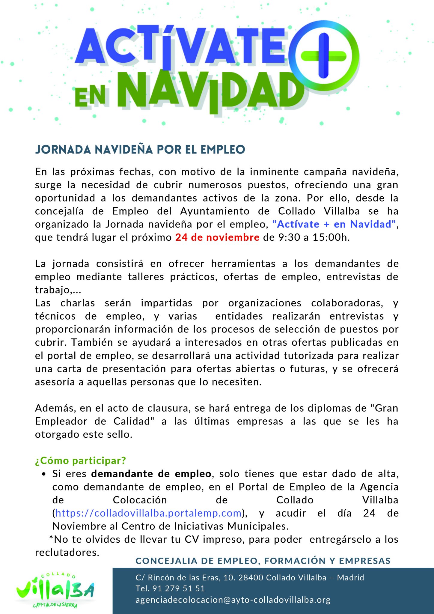 Collado Villalba organiza «Actívate + en Navidad», una jornada para encontrar empleo en estas fechas