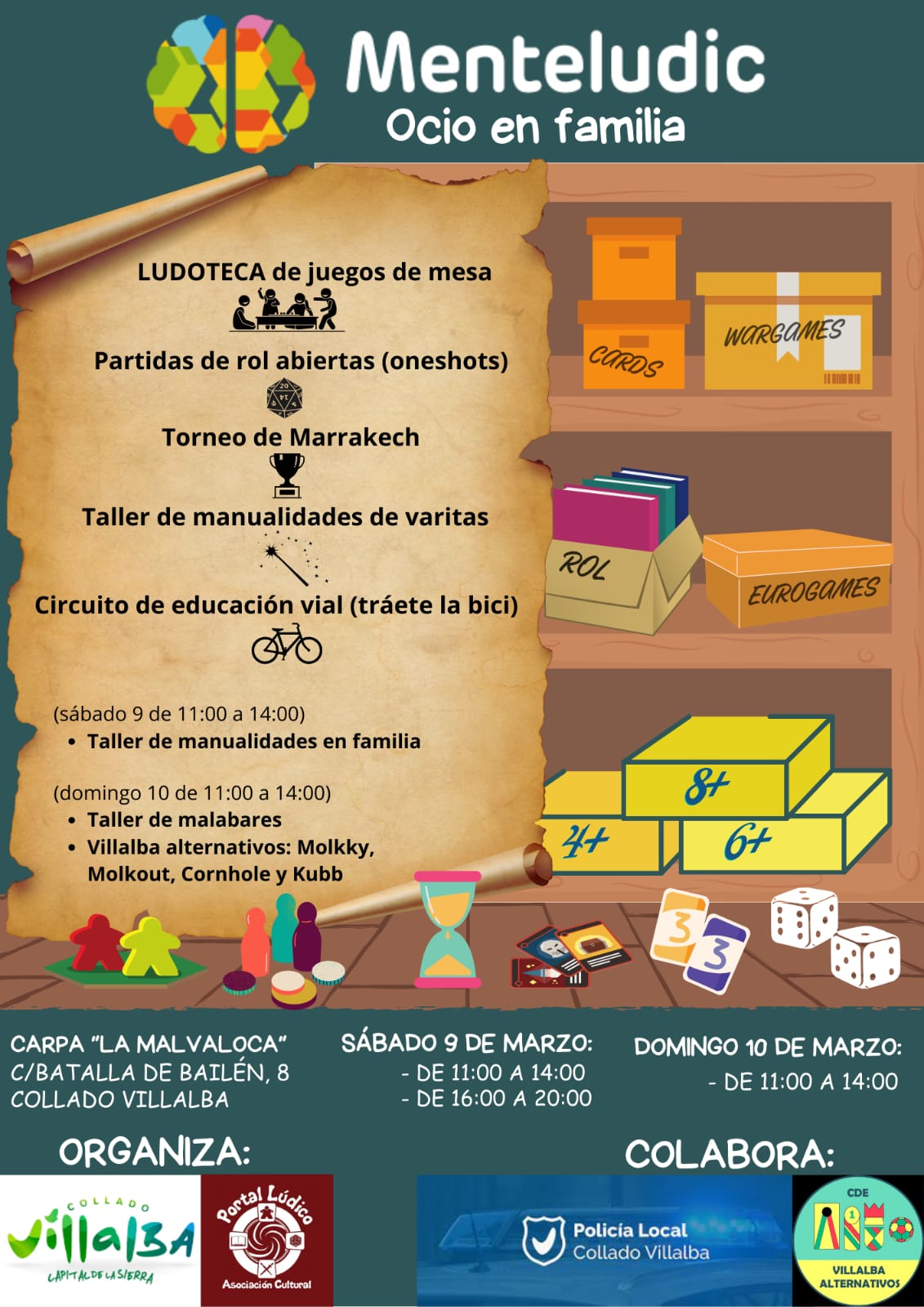 Esta actividad se hace en colaboración con la Asociación Cultural Portal Lúdico, Juegos Nómadas, Villalba Alternativos y Policía Local de Collado Villalba.