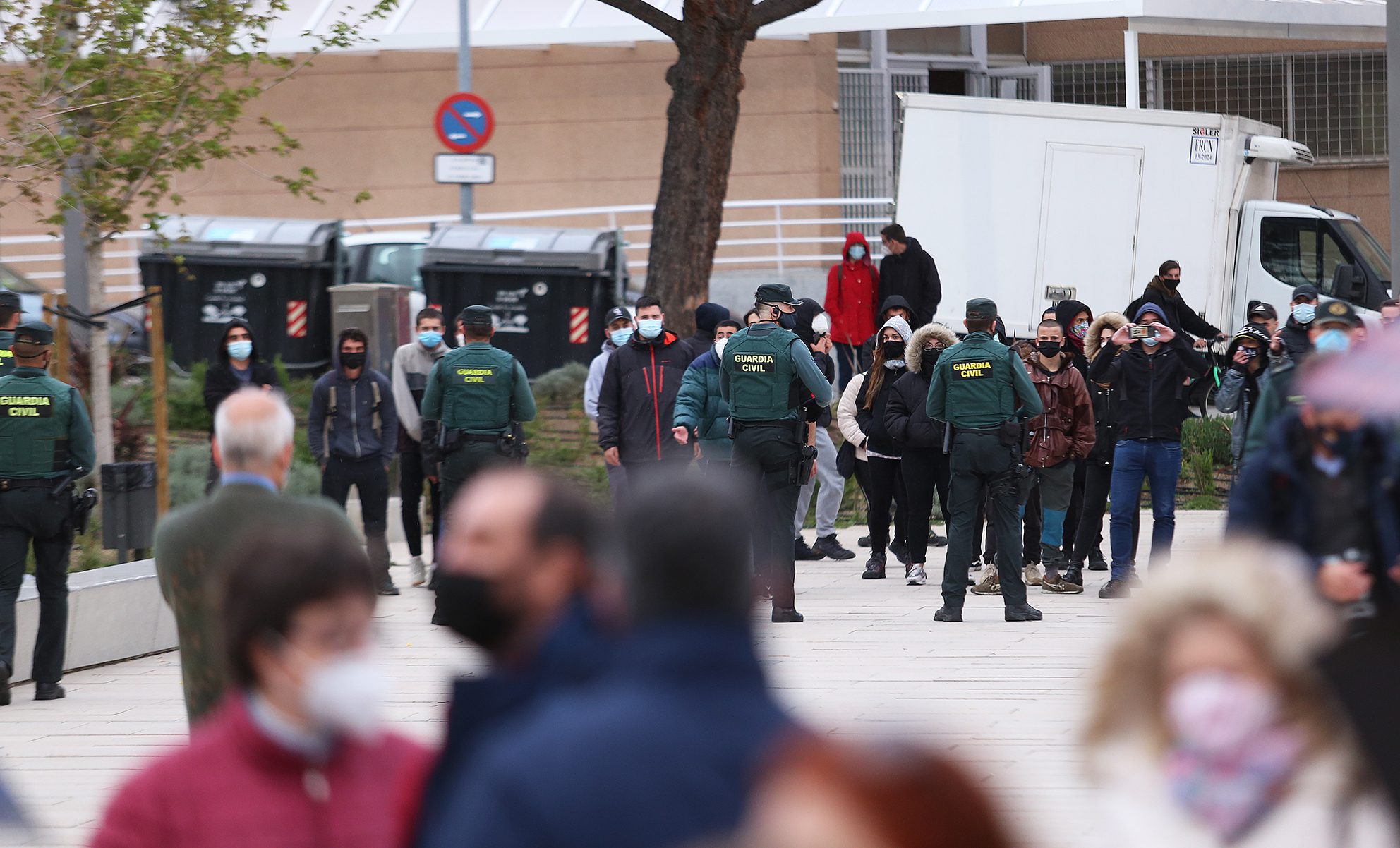 La fuerte presencia policial fue la protagonista en la tarde de ayer, lunes, de la visita que el diputado nacional y concejal del Ayuntamiento de Madrid de Vox, Javier Ortega Smith, realizó a Collado Villalba. Así, cerca de una veintena de agentes de la Guardia Civil, a los que se sumaron efectivos de la Policía Local e incluso de la Policía Nacional, acompañaron a una de las caras más visibles de esta formación política, que comenzó su recorrido visitando algunos comercios locales del centro urbano para terminar en la plaza de Los Belgas, donde, además de numerosos militantes y simpatizantes de Vox, le esperaba un grupo de jóvenes antifascistas. Así, la plaza quedó dividida en dos: en un lado los que aclamaban a Ortega Smith con vítores de «Viva España», mientras que en el otro se desplegó una pancarta con el lema «Protege Villalba, protege de Vox» tras la que se escucharon las proclamas «Fuera fascistas de nuestros barrios», «Vergüenza» o «Asco», entre otros. A pesar de la tensión, la lluvia aplacó los ánimos y finalmente las fuerzas de seguridad no tuvieron que intervenir.