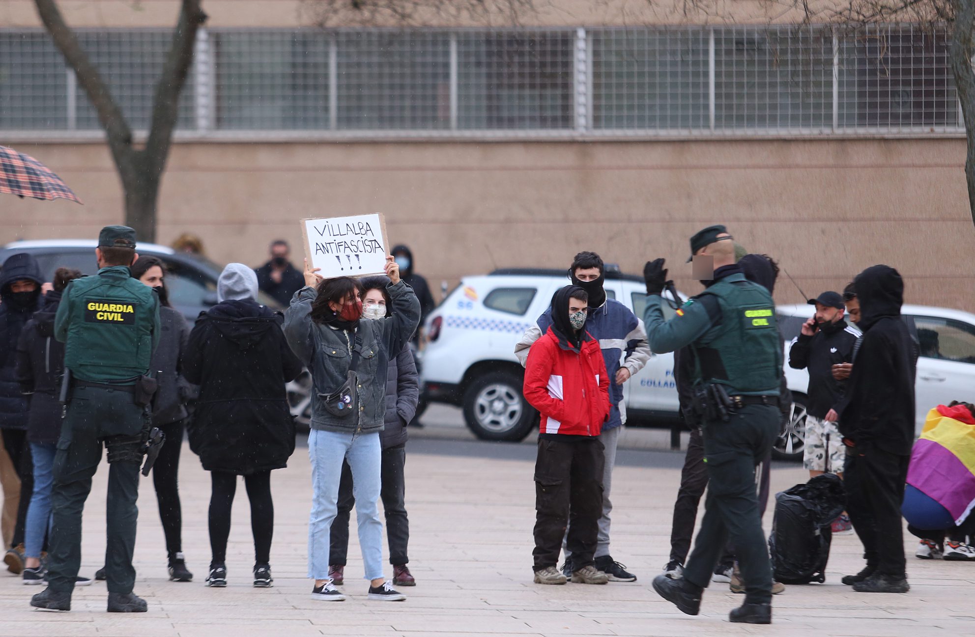 Un grupo de antifascistas se congregó en la plaza de Los Belgas, aunque no llegó a producirse ningún incidente. Javier Ortega Smith se esforzó por diferenciar sus políticas de las del PP, al que se refirió como "derechita cobarde", y de Ciudadanos -"la veleta naranja"-, ya que "de nada nos vale que la izquierda no gobierne si están sus políticas".