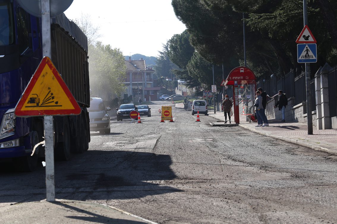 El asfaltado de varias calles de Villalba Pueblo provoca retenciones kilométricas en la M-608