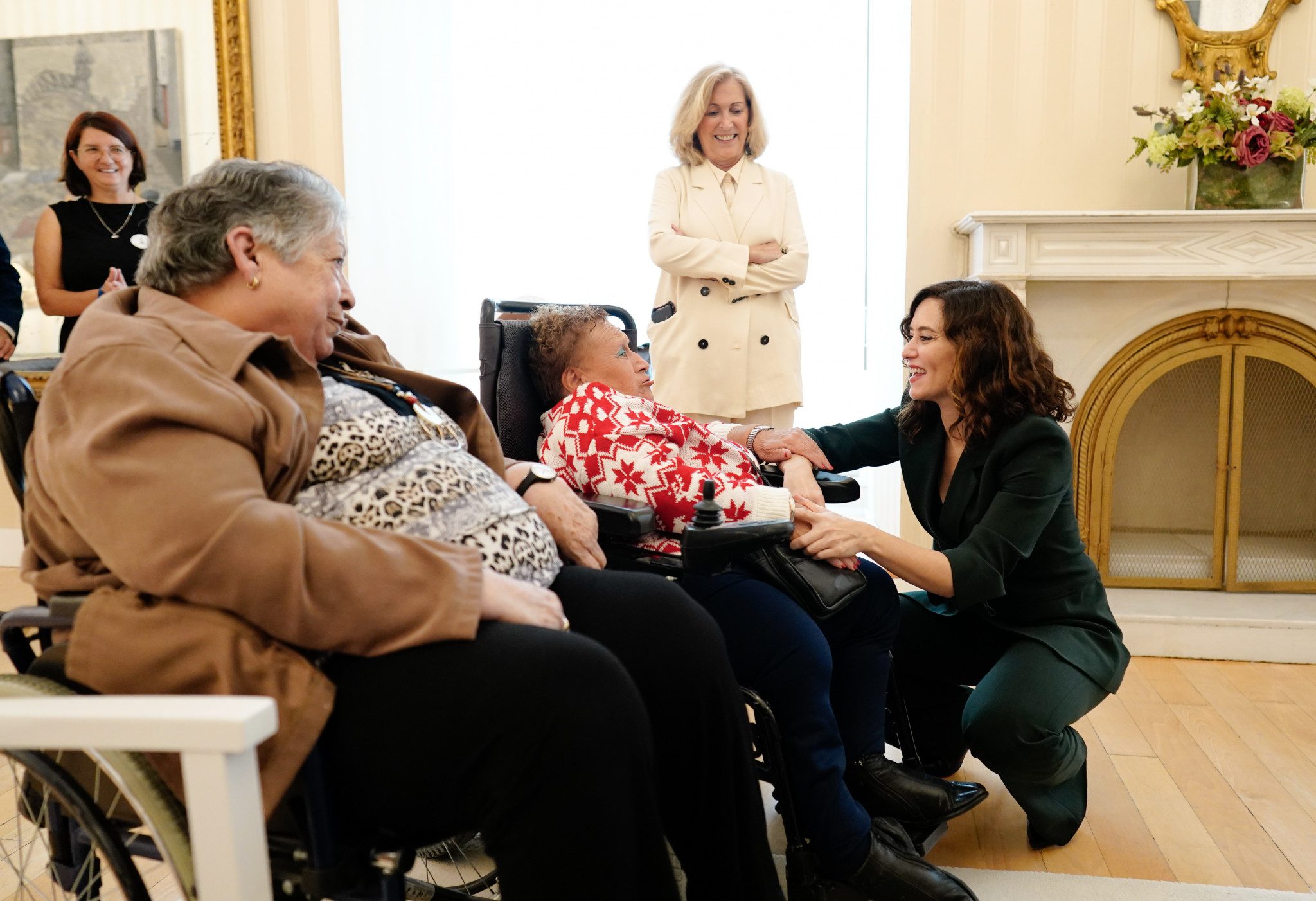 Díaz Ayuso recibe a mayores del proyecto «Tejiendo Solidaridad» de una residencia de Collado Villalba