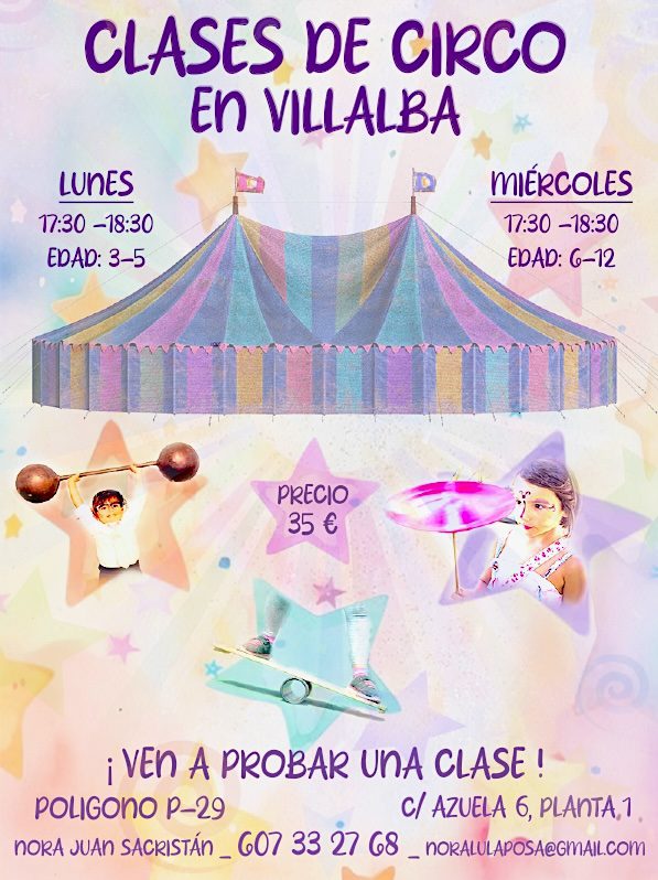 Este mes se inauguran unas originales Clases de Circo para niños/as en Collado Villalba, en el Polígono P-29. Esta actividad, que ya se está desarrollando en Moralzarzal, llega en diciembre a la capital de la Sierra. Una actividad que potencia la coordinación, la confianza y el desarrollo personal, de una manera lúdica y segura. Las actividades se dividirán en dos grupos según la edad y se impartirán los lunes y miércoles.