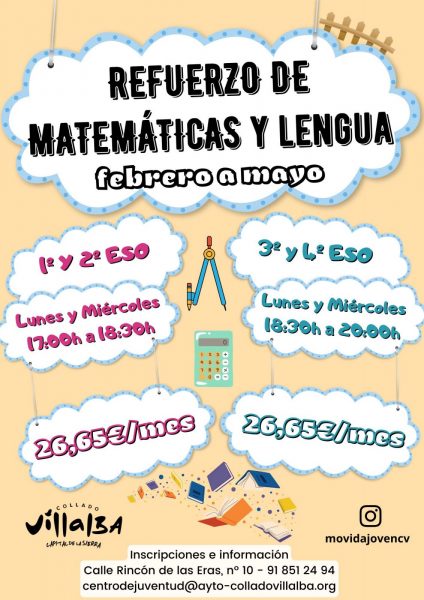 Más información en el Centro de Juventud, calle Rincón de las Eras, 10, de lunes a viernes de 10:00 a 14:00 y de 17:00 a 20:00 h. así como a través del correo electrónico centrodejuventud@ayto-colladovillalba.org el teléfono 918 502 494 y el WhatsApp 616 969 605.