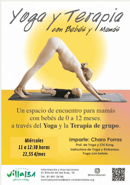 Los miércoles, de 11:00 a 12:30 h., se desarrolla el taller de Yoga para bebés, dirigido a recién nacidos acompañados de madres y padres recientes. Esta actividad contribuye al desarrollo psicomotor del bebé, favorece la relajación y el bienestar emocional y refuerza el vínculo afectivo familiar, además de ofrecer un espacio de apoyo y cuidado para las familias en esta etapa inicial.