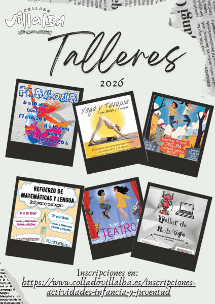 Ya está abierto el plazo de inscripción en los Talleres de Ocio Educativo que organiza la Concejalía de Infancia y Juventud del Ayuntamiento de Collado Villalba hasta el próximo mes de junio. Estos talleres siguen el calendario escolar y se desarrollan en grupos reducidos, con profesores especializados, lo que permite una atención cercana y adaptada a cada participante. Las actividades se realizan un día a la semana, con una duración de hora y media por sesión, y tienen un precio público de 22,55 euros mensuales por taller y de 26,65 en el caso de las clases de refuerzo. Todas las actividades se imparten en el Centro de Juventud de Collado Villalba, en la calle Rincón de las Eras, 10.