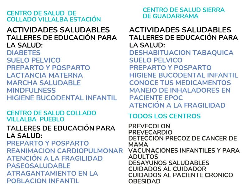 Lugar: Ágora de la Biblioteca Miguel Hernández y centros de Atención Primaria de Collado Villalba: Villalba Estación, Collado Villalba Pueblo y Sierra de Guadarrama