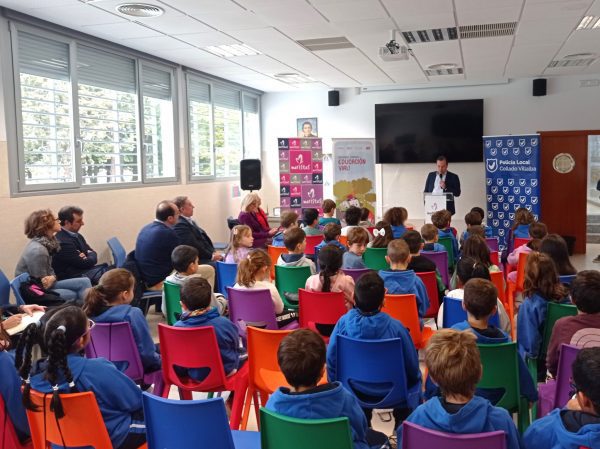 Los alumnos de 2º de Primaria del colegio Los Maristas, en Collado Villalba, han participado en la presentación junto a la alcaldesa, Mariola Vargas, la concejala de Seguridad, Yolanda Martínez, y el director de Movilidad Interurbana de Avanza, José Luis Román, así como varios agentes de la Policía Local de Collado Villalba, que impartirán estos talleres anuales.