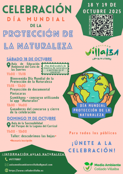 Las aulas de Naturaleza de Collado Villalba acogen este fin de semana diversas actividades, organizadas por la Concejalía de Medio Ambiente, con motivo de la celebración del Día Mundial de Protección a la Naturaleza, el 18 de octubre, bajo el lema «Restaurar la naturaleza, reconstruir nuestro futuro», con el fin de concienciar sobre la importancia de la restauración de ecosistemas degradados, la protección de hábitats como humedales y la promoción de la ecologización urbana.