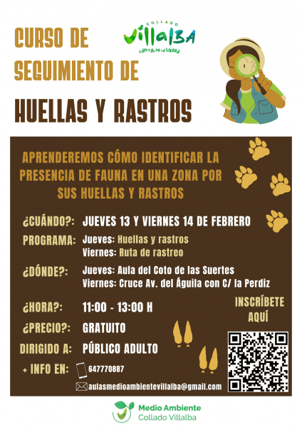 Inscripciones: https://www.colladovillalba.es/-/curso-gratuito-de-huellas-y-rastros-de-animales