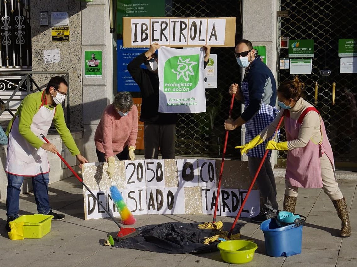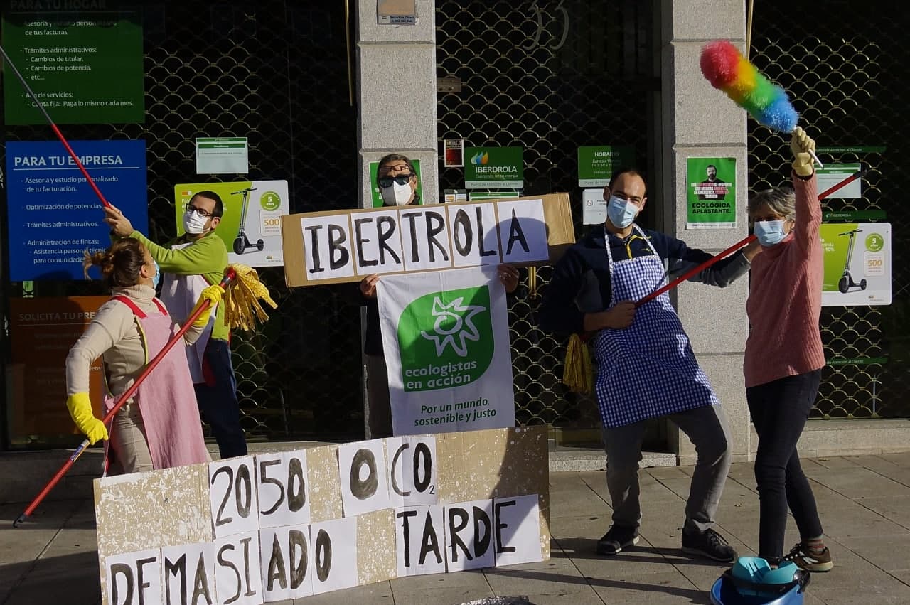 Ecologistas en Acción Sierras se ha sumado a la convocatoria internacional, desarrollada en España con más de 50 acciones por las organizaciones integradas en plataforma 2020 Rebelión por el Clima para denunciar a gobiernos y empresas por su negligencia climática. Seis personas escenificaron delante de la sede de Iberdrola Clientes en Collado Villalba el lavado verde que desarrolla esta empresa que se muestra como comprometida con la sostenibilidad al haber cerrado centrales térmicas de carbón, pero que sigue impulsando centrales de cogeneración basadas en la quema de combustibles fósiles que generan gases de efecto invernadero como el gas.