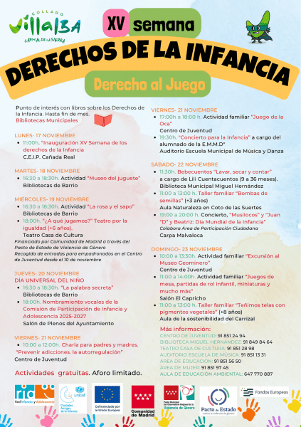«Derecho al Juego», lema de la XV Semana de los Derechos de la Infancia en Collado Villalba, que se celebrará hasta el domingo