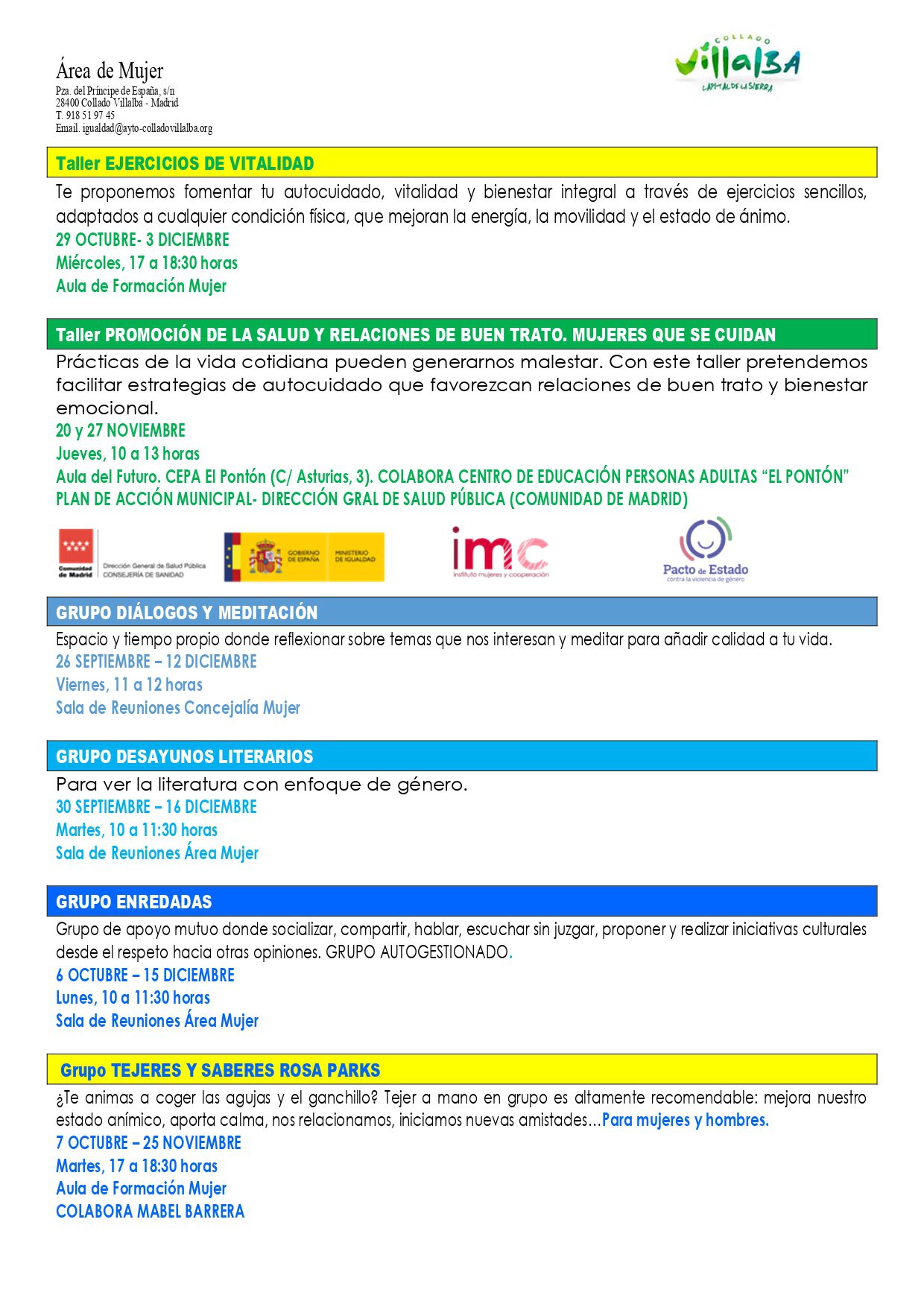 El Ayuntamiento de Collado Villalba oferta más de 20 talleres y actividades gratuitas desde el Área de Mujer hasta final de año