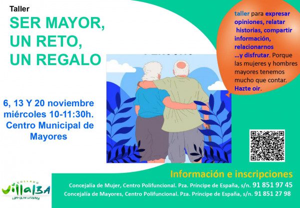 El Ayuntamiento de Collado Villalba, desde las concejalías de Mujer y Mayores, ha puesto en marcha un taller de sensibilización en materia de igualdad entre mujeres y hombres dirigido a personas mayores, bajo el título “Ser mayor, un reto, un regalo”.