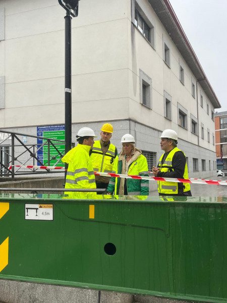 La alcaldesa, Mariola Vargas, junto al concejal de Urbanismo, Adan Martínez, y técnicos municipales, han inspeccionado los trabajos de instalación de la nueva climatización del Centro Polifuncional, a través de un sistema de aerotermia.
