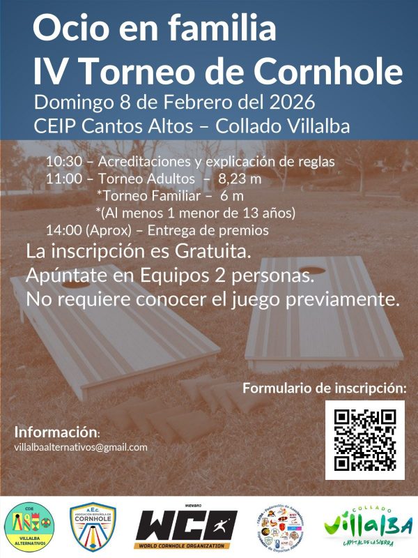 El área de Educación del Ayuntamiento de Collado Villalba organiza una nueva edición del Programa Ocio en Familia ‘Menteludic Kids’, un espacio de diversión para familias con niños que se celebrará este domingo, 8 de febrero, de 10:30 a 14 h., en el CEIP Canto Altos, con el IV Torneo de Cornhole.
