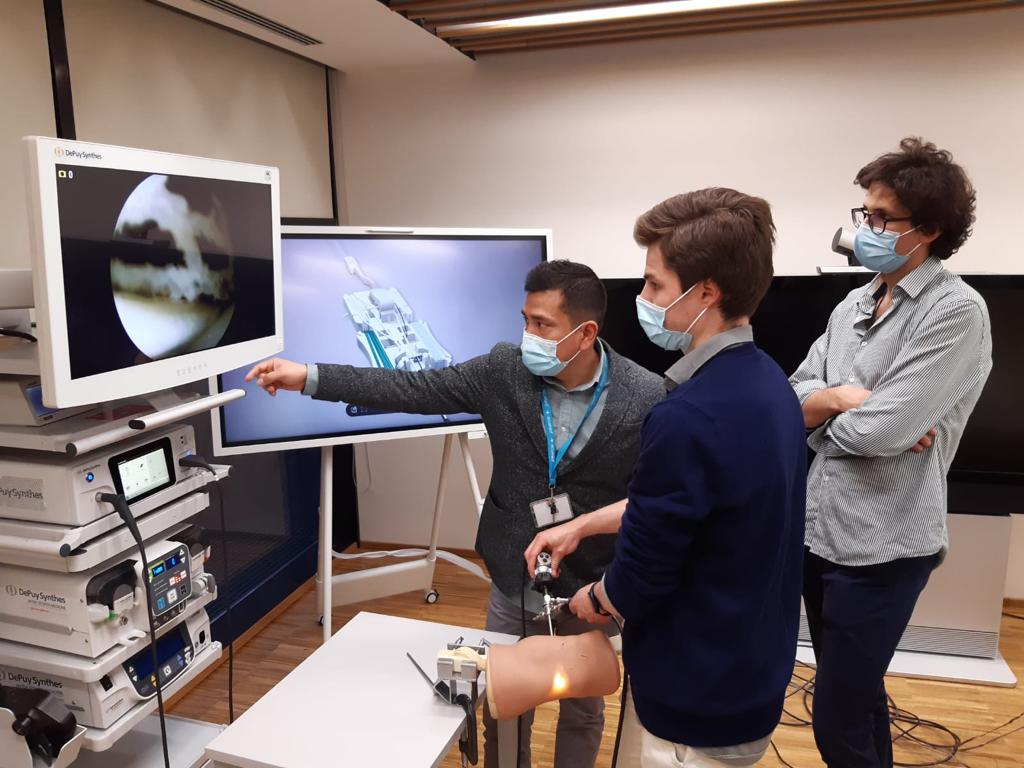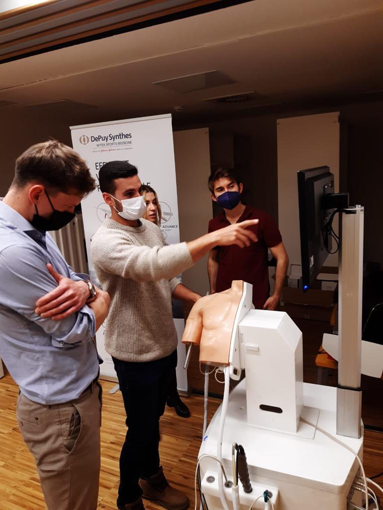 Las operaciones con esta técnica son delicadas y requieren que el cirujano tenga mucha destreza manual, además de prácticas y estudios previos. Por ello, durante las sesiones se han abordado los principios básicos de la cirugía artroscópica, pero principalmente llevados a la práctica. “Hemos usado un simulador de artroscopia parecido a los que usan los pilotos para formarse, que les permite acumular horas de experiencia en cirugía, y practicar para aprender a triangular dentro de la articulación”, explica la Dra. Ruiz Micó, que, además de ecografías y enseñanzas muy específicas como el taller de nudos, destaca también la utilización de un simulador con realidad virtual y una torre de visionado y trabajo, la misma que se utiliza para una artroscopia real, solo que, en lugar de un paciente, tienen fantomas (muñecos) para practicar con ellos.