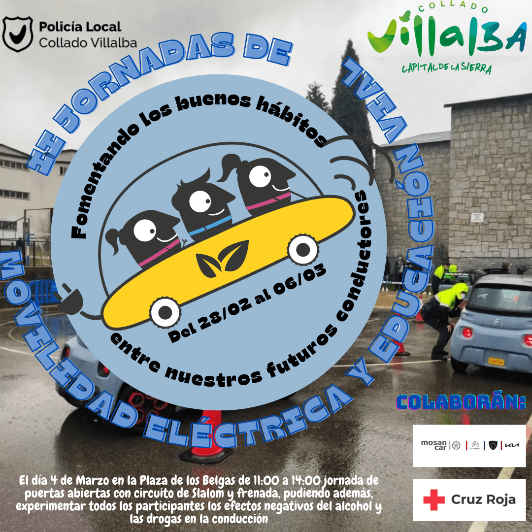 El Ayuntamiento de Collado Villalba, desde la Concejalía de Seguridad Ciudadana, Circulación y Transportes, y con la colaboración de Citroën Mosancar y Cruz Roja Collado Villalba, celebra por segundo año consecutivo las Jornadas de Movilidad Eléctrica y Educación vial. Se impartirán hasta el 6 de marzo, y van dirigidas a los alumnos de 1º de Bachillerato, de todos los institutos del municipio. Esta iniciativa se enmarca dentro de las diferentes actividades municipales que se desarrollan a lo largo del año para fomentar y promocionar una educación vial entre los jóvenes, en este caso, entre aquellos que han alcanzado la edad legal para poder aspirar a obtener su primer permiso de conducir.