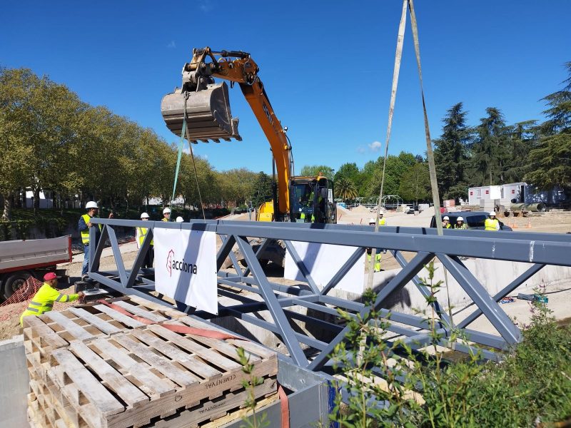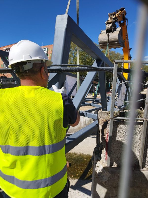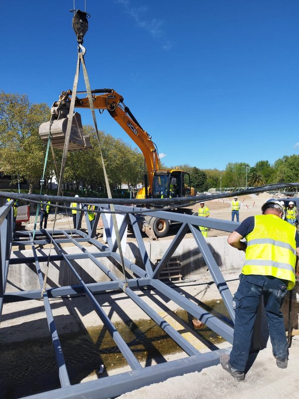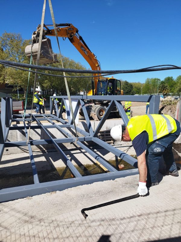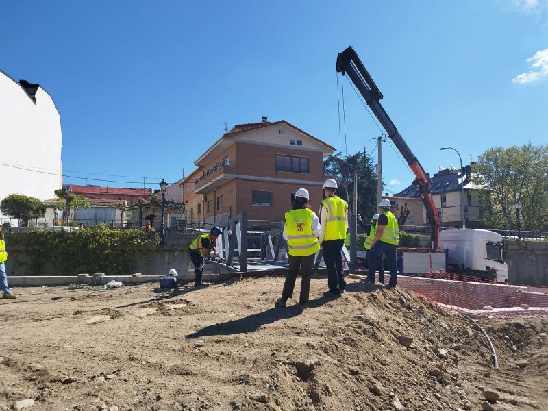 El proyecto de renaturalización del río Guadarrama a su paso por Collado Villalba ha entrado en una de sus últimas fases. Con el 83 por ciento del proyecto finalizado, esta mañana se ha procedido a la instalación de una pasarela peatonal sobre el arroyo de la Poveda, que unirá nuevamente el Parque de las Bombas con el aparcamiento situado junto al río. Se trata de una estructura metálica con una longitud de 10 metros de largo y que contará con una superficie también metálica antideslizante.