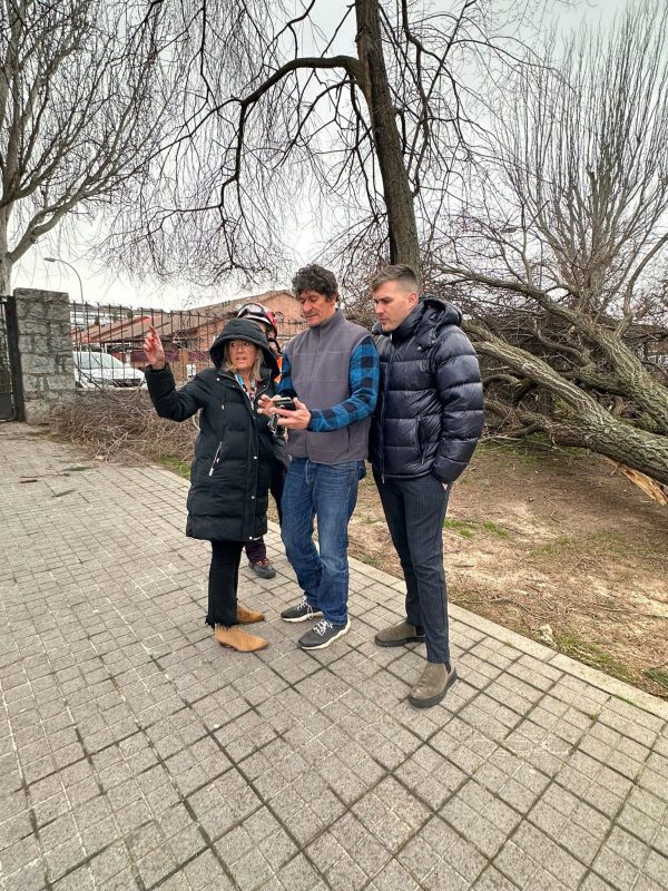 La alcaldesa de Collado Villalba, Mariola Vargas, junto al concejal de Medio Ambiente, Adan Martínez, realizaron ayer, lunes 16 de febrero, una visita para inspeccionar los daños causados por el viento. En concreto, han recorrido el Parque de La Laguna del Carrizal, donde las fuertes rachas han derribado varios ejemplares.