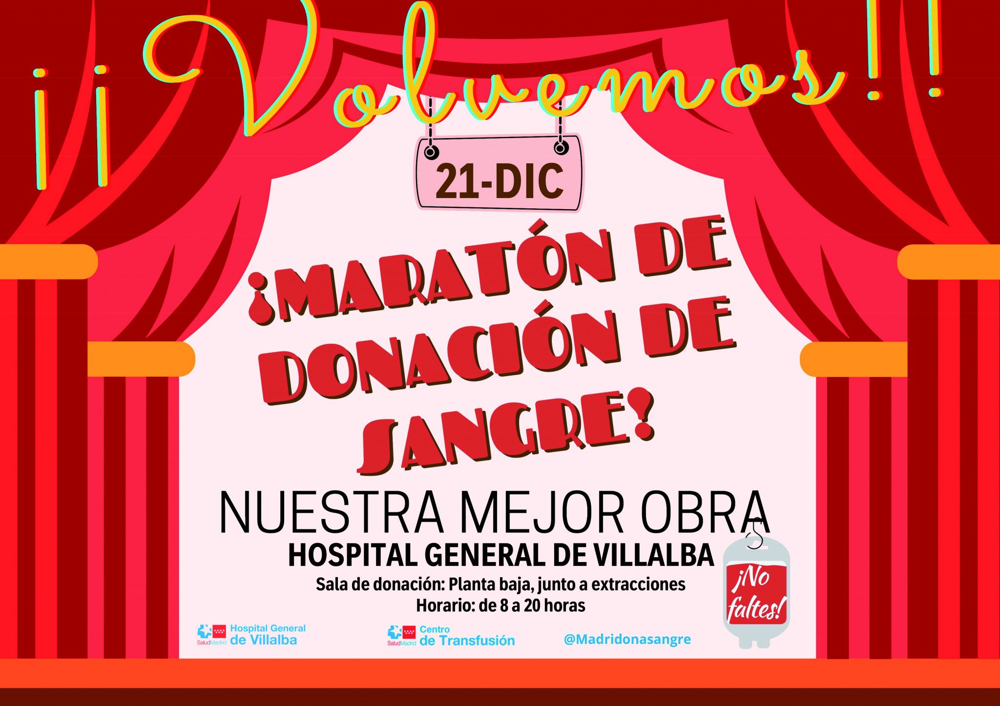 El Hospital Universitario General de Villalba ha organizado un maratón navideño de donación de sangre con motivo de estas fiestas para el próximo martes, 21 de diciembre. Esta acción solidaria, que se extenderá desde las 8 a las 20 horas, se realizará en la Sala de donación, en la plata baja, junto a la zona de extracciones.