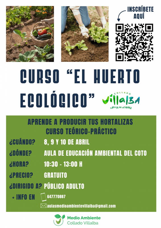 La participación es gratuita previa inscripción desde la página web municipal: https://www.colladovillalba.es/-/nueva-edici%C3%B3n-del-curso-el-huerto-ecol%C3%B3gico-en-el-aula-de-educaci%C3%B3n-ambiental-del-coto-de-las-suertes