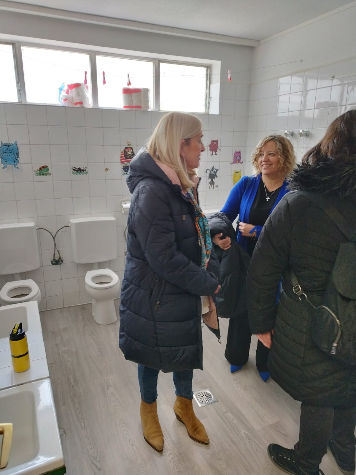 La alcaldesa, Mariola Vargas, junto a la concejala de Educación, Yolanda Martínez, acompañadas del director del centro, José Antonio Álvarez, han visitado esta mañana las obras de remodelación que se han llevado a cabo en el colegio de Infantil San Antonio, ubicado en la calle Fuente del Álamo, en Villalba Pueblo, y que han contado con una inversión de 18.000 euros.