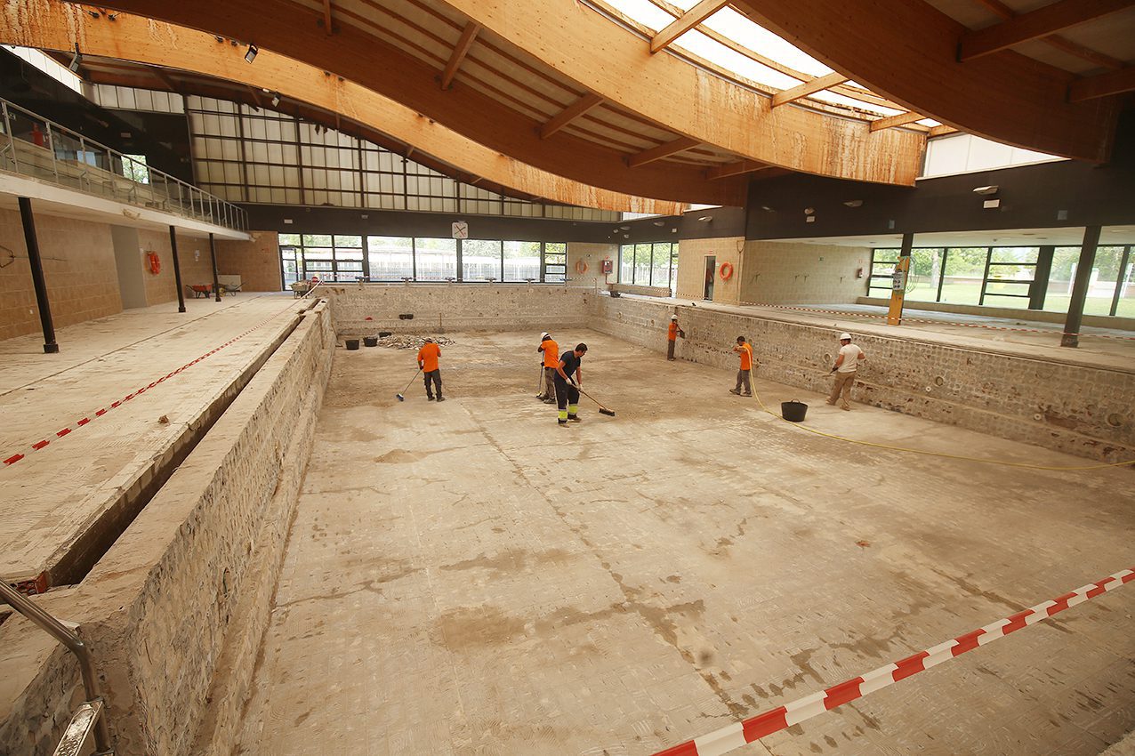 Esta obra cuenta con un presupuesto de 479.130 euros y un plazo de ejecución de tres meses, los trabajos se están centrando en el saneamiento y la impermeabilización del vaso, reparación de filtraciones, arreglo de las zonas perimetrales, y adecuación de los vestuarios, entre otras actuaciones.