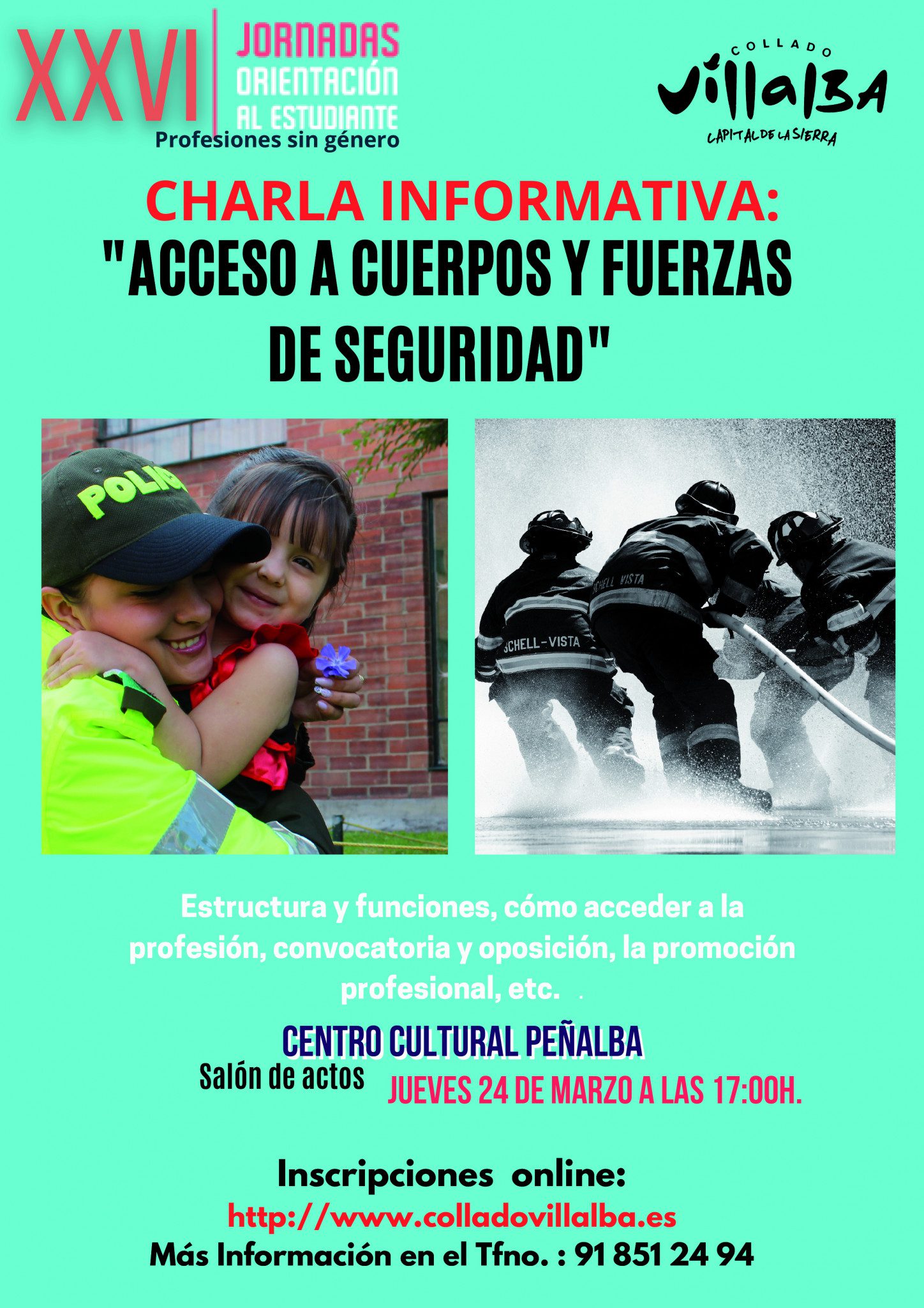 Además, también el jueves 24 de marzo, a las 17:00 h., se celebrará en el Centro Cultural Peñalba la charla informativa “Acceso a las fuerzas y cuerpos de seguridad”, para aquellos jóvenes que se estén planteando esta posibilidad como opción de futuro. Durante la misma se analizará la estructura y funciones de las fuerzas y cuerpos de seguridad, cómo acceder a esta profesión, las oposiciones, convocatorias, promoción profesional y otros aspectos de interés.