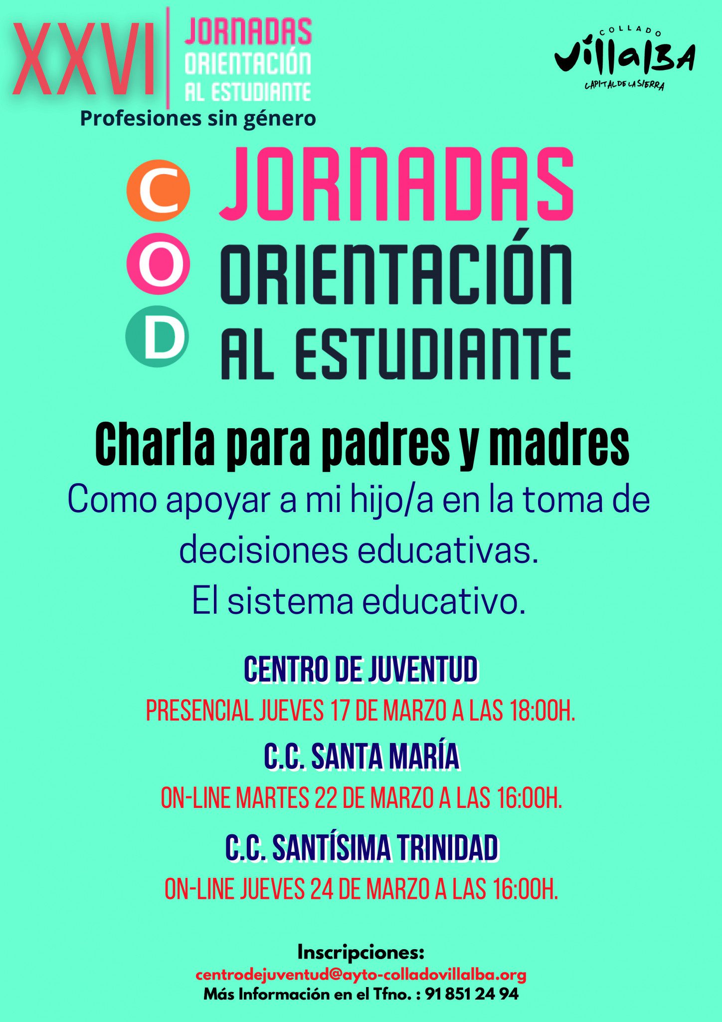 Últimas horas para apuntarse a las charlas informativas que se celebran a lo largo de esta semana en las Jornadas de Orientación al Estudiante 2022. Se trata de charlas online dirigidas a padres y madres, en las que se informará sobre la mejor manera de apoyar a los hijos en la toma de decisiones sobre su orientación profesional. Tendrá lugar el 24 de marzo, a las 16:00 h.