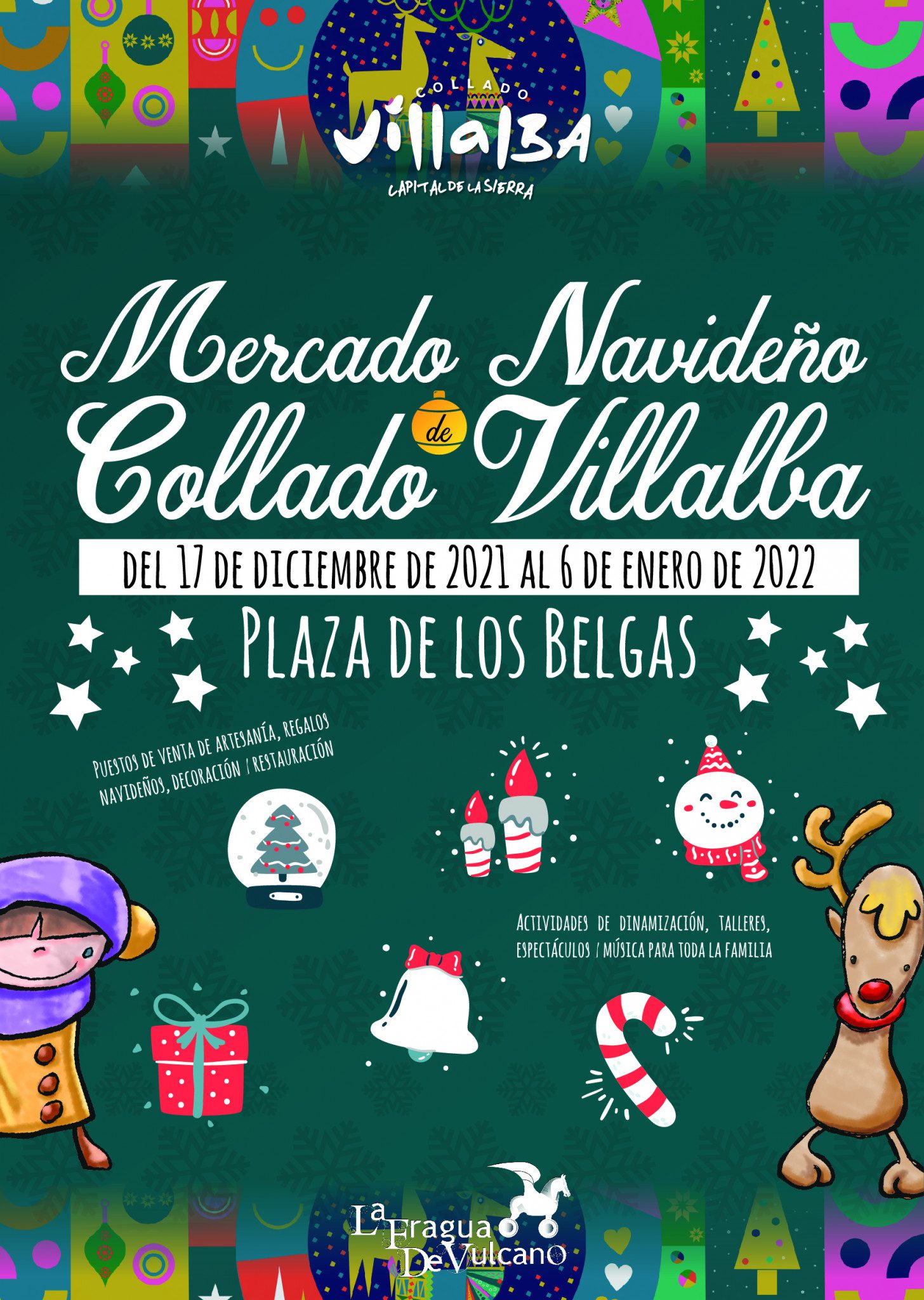 El Mercado de la Navidad de Collado Villalba concentra estos días multitud de actividades para toda la familia aunque la celebración de las mismas está sujeta a las condiciones climatológicas reinantes en ese momento. Espectáculos de calle, dinamizaciones, pajes y carteros reales, circo, humor o conciertos navideños son solo algunos de los eventos programados. A ellos se suman diversos talleres y cuentacuentos para los más pequeños de la casa.