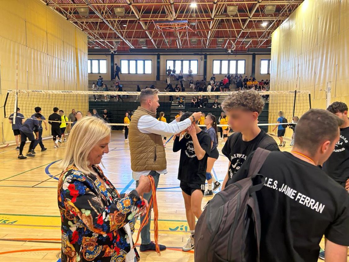 La alcaldesa, Mariola Vargas, y el concejal de Deportes, Adan Martínez, fueron los encargados de entregar las medallas a los vencedores en categoría masculina, los integrantes del equipo del Instituto Jaime Ferrán.