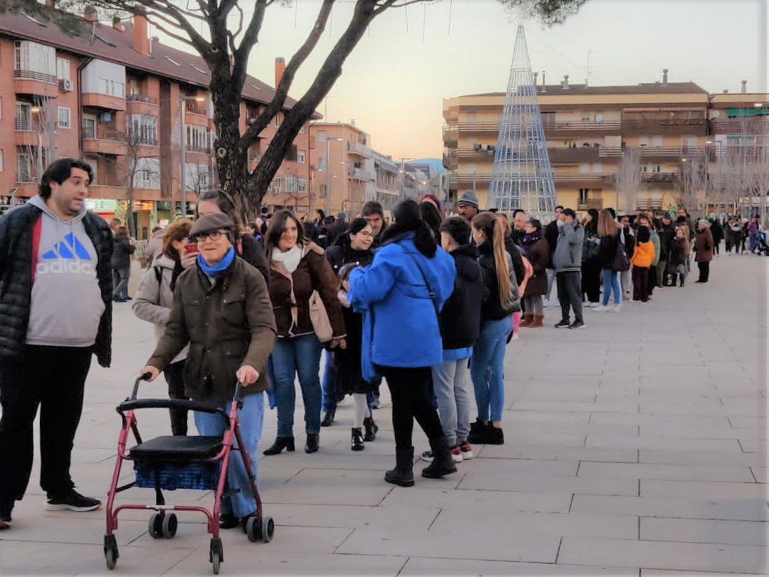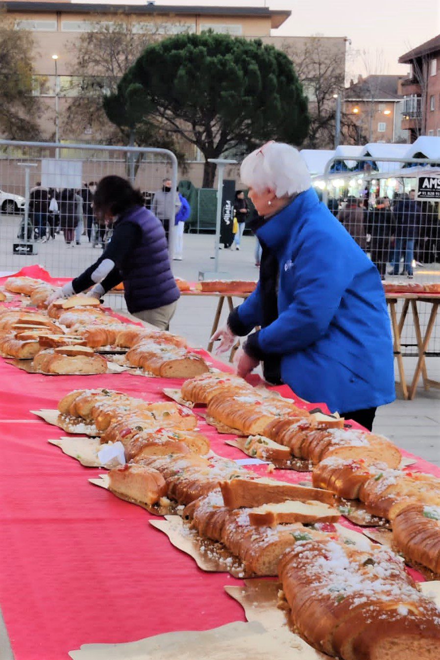 Centenares de personas se acercaron ayer, 3 de enero, a la Plaza de los Belgas de Collado Villalba, donde tuvieron la oportunidad de degustar una ración del Roscón Solidario de la Sierra, a cambio de una pequeña aportación voluntaria, una iniciativa del área de Desarrollo Local, realizada en colaboración con el tejido asociativo del municipio.