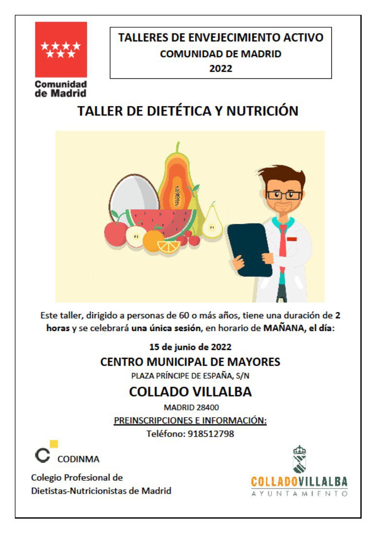 Más de 30 personas participarán mañana, miércoles 15 de junio, en el taller “Dietética y Nutrición”, organizado por la Concejalía de Mayores del Ayuntamiento de Collado Villalba y la Dirección General de Atención al Mayor y a la Dependencia de la Consejería de Familia de la Comunidad de Madrid. Esta actividad, que se desarrollará en el Centro Municipal de Mayores a partir de las 10:30 h., se enmarca dentro del Programa de Envejecimiento Activo y Saludable.