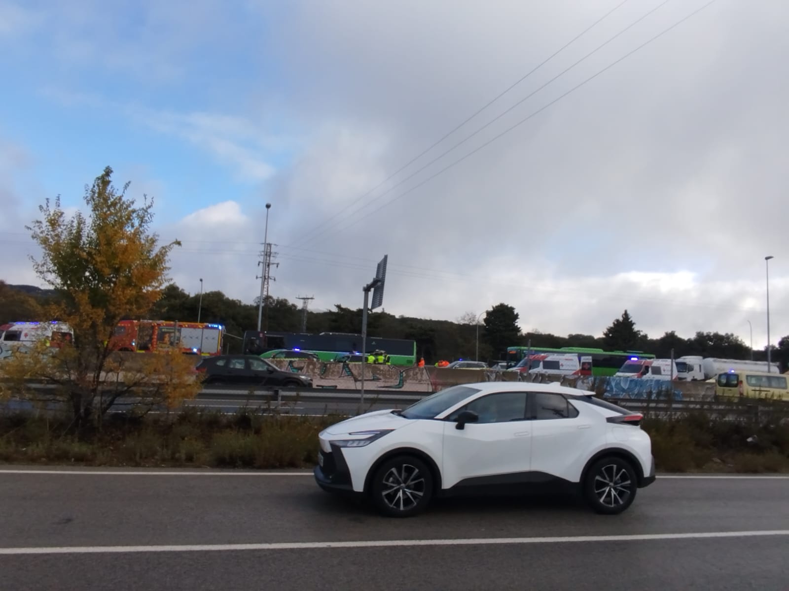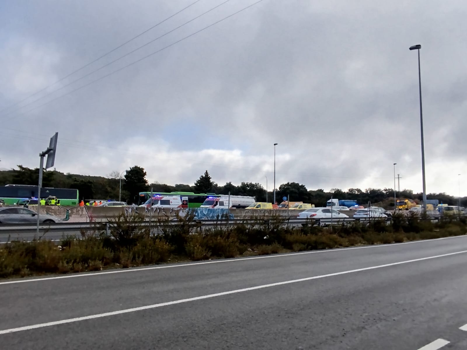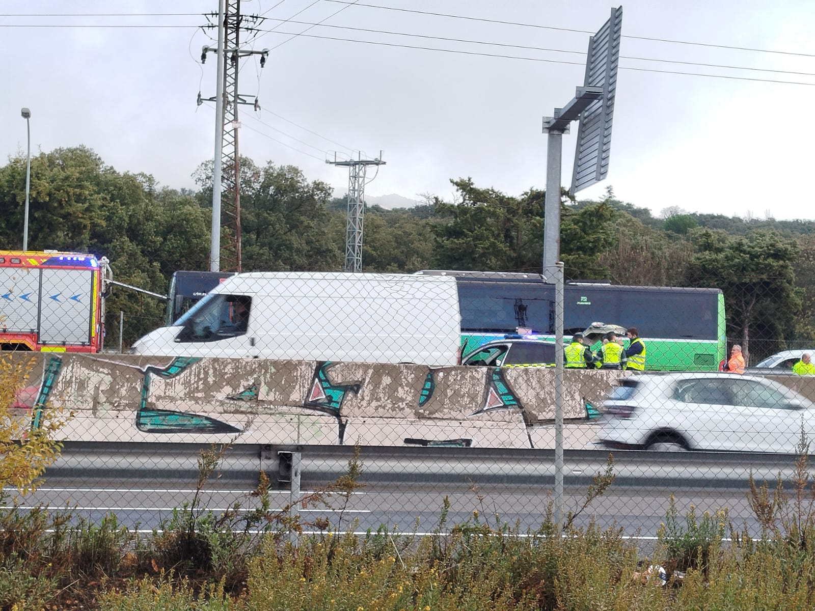 Varios heridos graves en un accidente entre un autobús y un vehículo de reparto en la A-6 en Collado Villalba