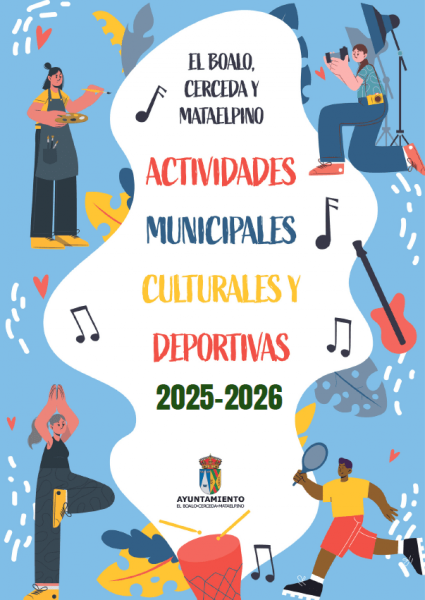 El Ayuntamiento de El Boalo, Cerceda y Mataelpino presenta las Actividades Culturales y Deportivas 2025-2026, una invitación a todos los vecinos, desde los más pequeños hasta los mayores, para participar en una amplia y diversa oferta que promueve el aprendizaje, el bienestar y la convivencia. En este nuevo catálogo, hay una gran variedad de propuestas pensadas para todos los gustos e intereses.
