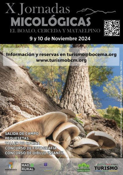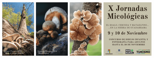 El Ayuntamiento de El Boalo, Cerceda y Mataelpino ha organizado la décima edición de las Jornadas Micológicas, que se celebrarán el sábado 9 y el domingo 10 de noviembre con diversas actividades entre las que destacan una salida al campo, un taller de cocina y un concurso de fotografía. Además, los más pequeños de la casa podrán divertirse con la propuesta «Pequesetas» y un concurso de dibujo infantil.